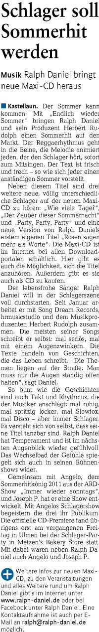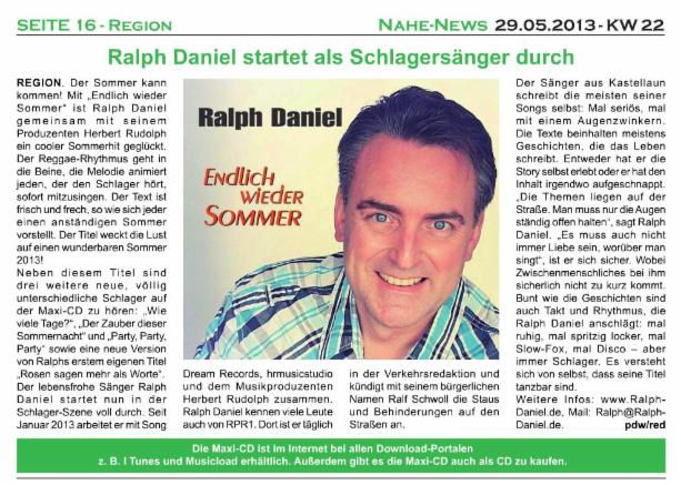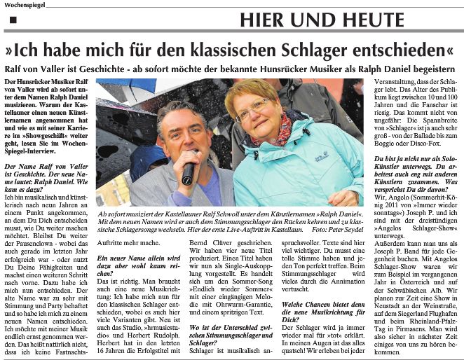 Schlagerparty mit CD Premiere in Ulmen (Rhein-Zeitung, Cochem, 08.05.2013)
